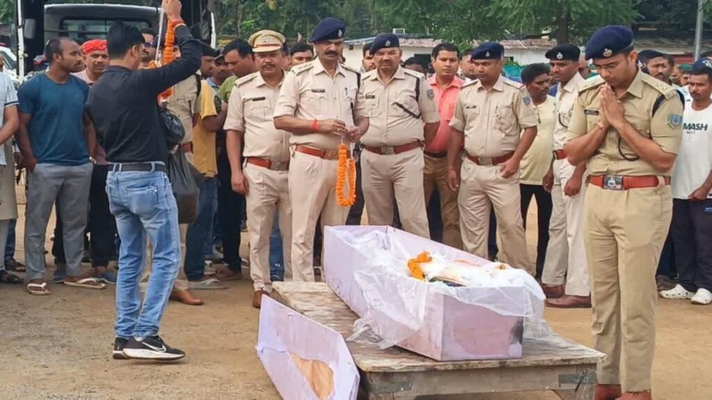 अजय कुमार पांडेय का पैतृक गांव तलेया में उनका अंतिम संस्कार किया गया. अजय कुमार 2012 बैच के कांस्टेबल थे और पिछले कई वर्षों से पलामू एसपी कार्यालय में तैनात थे. पलामू मेंस एसोसिएशन के अध्यक्ष सुशील सिन्हा ने बताया कि जवान अजय कुमार पांडेय का रिम्स में निधन हुआ है. सलामी के दौरान सार्जेंट मेजर सुरेश राम, मेंस एसोसिएशन के विक्रांत दुबे, मोहम्मद इसराइल, नरेंद्र कुमार सिंह समेत कई लोग शामिल रहे।