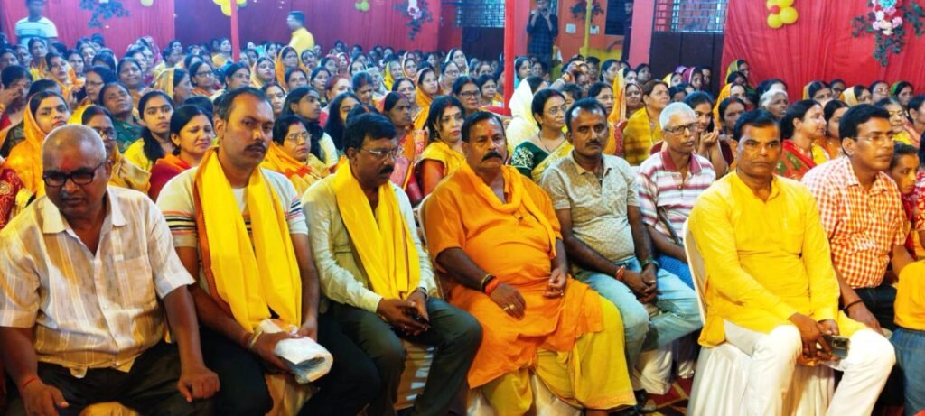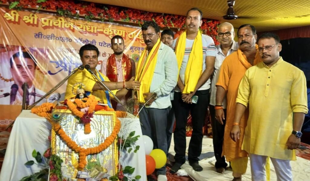 भुरकुंडा (रामगढ़)। पटेलनगर सीसीएल कॉलोनी स्थित श्रीश्री राधाकृष्ण ठाकुरबाड़ी में जारी सात दिवसीय श्रीमद् भागवत कथा महोत्सव के चौथे दिन रविवार की रात्रि राम जन्म, सीता स्वयंवर और श्रीकृष्ण अवतार जैसे प्रसंगों की मनमोहक व्याख्यान ने श्रद्धालुओं को भावविभोर कर दिया। स्वामी नारायणाचार्य महाराज की दिव्य वाणी और संगीतमय प्रस्तुतियों से पूरा वातावरण भक्तिरस में डूब गया। सांझ ढलते ही कथा स्थल पर श्रद्धालुओं का सैलाब उमड़ पड़ा। कथा रात्रि तक चलती रही, जिसमें सैकड़ों भक्तों ने भाग लिया।