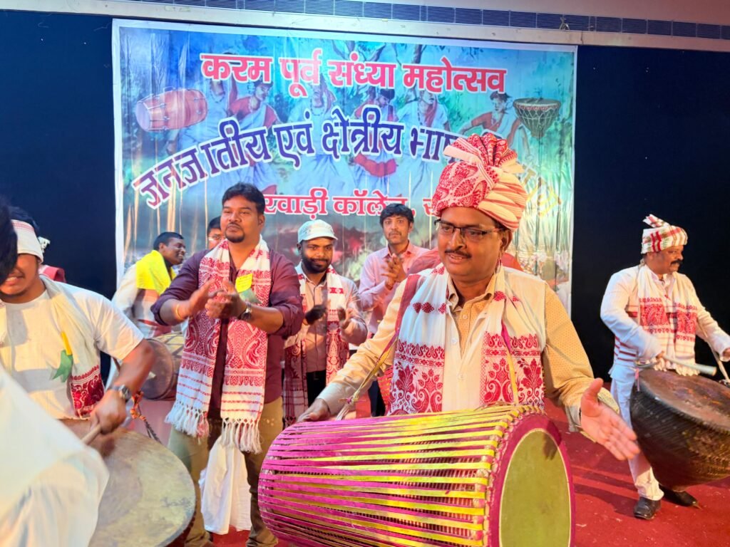 रजरप्पा। रांची के मारवाड़ी महाविद्यालय,रांची में जनजातीय एवं क्षेत्रीय भाषा विभाग द्वारा “करम पूर्व संध्या महोत्सव” अत्यंत ही हर्षोल्लास एवं धूमधाम के साथ मनाया गया। इस महोत्सव में विभाग के अन्तर्गत सभी भाषाओं के छात्र-छात्राओं ने अपनी-अपनी पारंपरिक नृत्य प्रस्तुतियां दीं। कार्यक्रम में मुख्य अतिथि के रूप में उपस्थित मारवाड़ी महाविद्यालय के प्राचार्य डॉ. मनोज कुमार ने कहा कि करम पर्व झारखण्ड की सांस्कृतिक अस्मिता का जीवंत प्रतीक है।