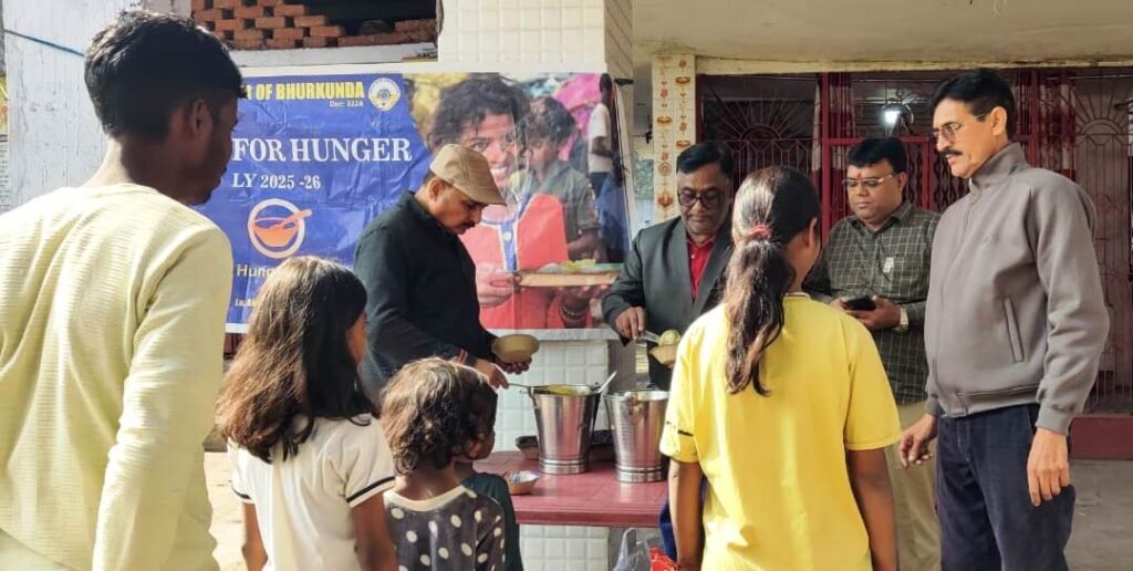भुरकुंडा (रामगढ़)। लायंस क्लब ऑफ भुरकुंडा ने प्रत्येक सप्ताह की भांति इस शनिवार को भी भुरकुंडा के पटेलनगर सयाल मोड़ स्थित मां शीतला देवी मंदिर में नर सेवा नारायण सेवा कार्यक्रम के तहत भव्य भंडारा का आयोजन किया। सर्वप्रथम पूरे विधि-विधान एवं वैदिक मंत्रोच्चारण के बीच पूजा-अर्चना कर मां को लड्डू का भोग चढ़ाया गया। इसके बाद लायंस क्लब ने फूड फॉर हंगर के तहत लगभग 250 लोगों को खिचड़ी रूपी प्रसाद खिलाकर आर्शीवाद लिया।