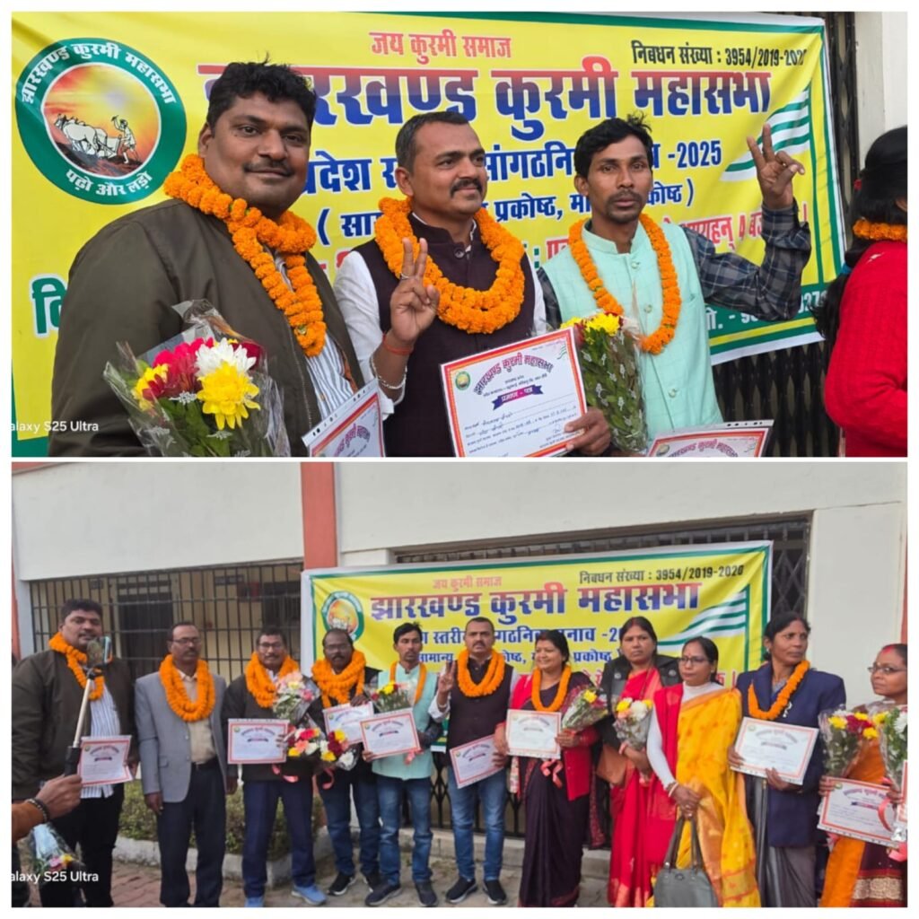 गिद्दी/सिरका। आरटीसी बीएड कॉलेज बूटी, रांची में झारखंड कुरमी महासभा का प्रदेश स्तरीय संगठनात्मक चुनाव शांतिपूर्ण माहौल में संपन्न हुआ। चुनाव की पूरी प्रक्रिया मुख्य पदाधिकारी डॉ. भुनेश्वर महतो तथा सहायक पदाधिकारी देवकी महतो, मुनेश्वर महतो और डॉ. राजनारायण सिंह पटेल की देखरेख में संपन्न हुई। इस चुनाव में हजारीबाग जिला के डाड़ी प्रखंड, रबोध पंचायत स्थित ग्राम कोदवे रोयांग के निवासी एवं पूर्व युवा मोर्चा कोषाध्यक्ष गुलचंद महतो को झारखंड कुरमी महासभा युवा मोर्चा का प्रदेश महासचिव चुना गया। उनके चयन से पूरे प्रदेश में खुशी की लहर है।