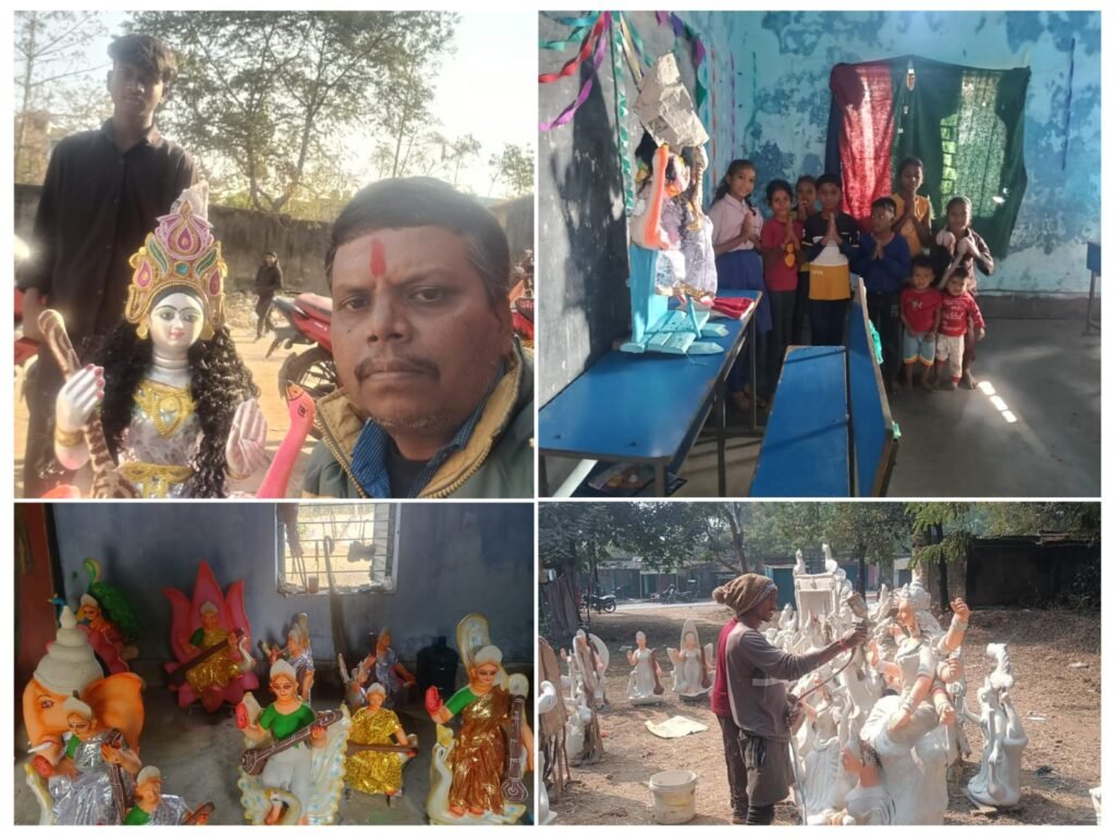 कोयलांचल अरगड्डा क्षेत्र में मां सरस्वती के भक्तों ने मां की प्रतिमाओं को अपने पंडाल और विद्यालय में लाया
