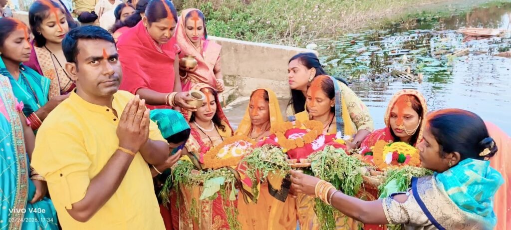 चितरपुर। मंगलवार को बडे़ ही भक्ति भावना से अस्ताचलगामी सूर्य को लोगों ने अर्घ्य प्रदान किया। अर्घ्य अर्पित करने से पहले व्रतियों ने आदिदेव भुवन भास्कर को नमन किया। परिवार की सुख-शांति के लिए मंगल कामना की। मां छिन्नमस्तिका मंदिर रजरप्पा समेत कोयलाँचल के विभिन्न छठ घाटों में भगवान सूर्य को अर्ध्य दिया गया।