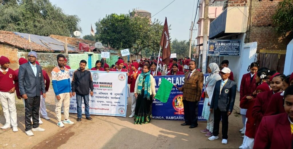 भुरकुंडा (रामगढ़)। अग्रगति संस्था के तत्वावधान में ए ला एंग्लाइज सीनियर सेकेंडरी विद्यालय बिरसा चौक भुरकुंडा में बाल विवाह मुक्त भारत अभियान के तहत साइक्लोथॉन का आयोजन किया गया। इस कार्यक्रम का उद्देश्य बाल विवाह के खिलाफ जागरूकता फैलाना, समाज में इसके प्रति संवेदनशीलता बढ़ाना और इसे समाप्त करने के लिए लोगों को प्रेरित करना था।