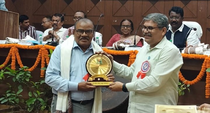 रजरप्पा। खोरठा साहित्य संस्कृति परिषद् के अध्यक्ष डॉ बीएन ओहदार (भोगनाथ ओहदार) को डॉ रामदयाल मुंडा की 86वीं जयंती के अवसर पर मुंडारी साहित्य परिषद , एवं जनजातीय शोध संस्था ,झारखण्ड सरकार द्वारा मोमेंटो , प्रशस्ति पत्र एवं शॉल ओढ़ा कर टी आर आई के पूर्व निदेशक डॉ रनेन्द्र के कर कमलों द्वारा सम्मानित किया गया ।