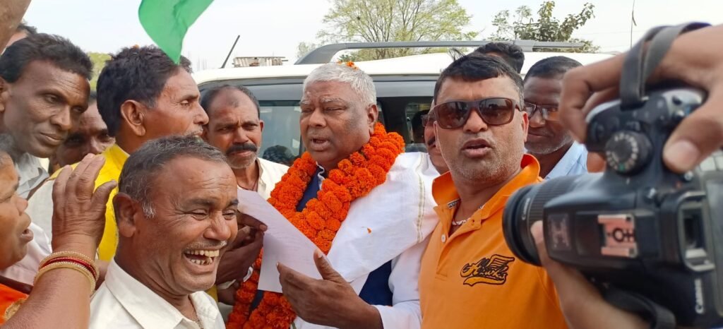 रजरप्पा। पूर्व मंत्री टुंडी विधायक सह मुख्य सचेतक विधायक मथुरा प्रसाद महतो का गोला डीभीसी चौक गोला में झारखंड आंदोलनकारी महासभा के जिला अध्यक्ष सुनील राज चक्रवर्ती के नेतृत्व मे भव्य स्वागत किया गया गोला प्रखंड के झारखंड अधिकारी एवं पार्टी समर्थित साथियों ने मथुरा प्रसाद महतो जी का भव्य स्वागत कर ज्ञापन सोपा गया