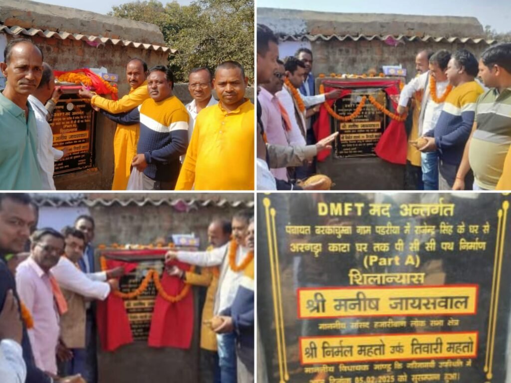 सिरका। बड़का चुम्बा के पड़रिया गांव में राजेन्द्र सिंह के घर से अरगड्डा कांटा घर तक पीसीसी पथ का निर्माण (पार्ट-ए) का शिलान्यास मांडू प्रखंड के विधायक निर्मल महतो उर्फ तिवारी महतो एवं बड़का चुम्बा मुखिया राजेन्द्र कुमार प्रसाद उर्फ राजू महतो ने नारियल फोड़ कर किया।