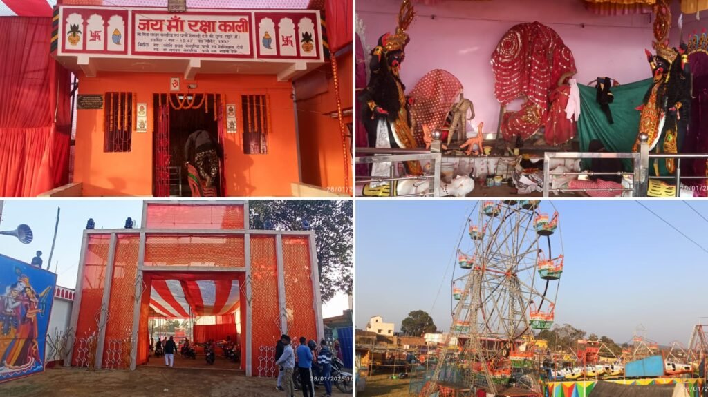 30 जनवरी 2025 को मां रक्षा काली पूजा का विसर्जन। इसे लेकर पंडाल, विद्युत सज्जा, एलईडी लाइट, सीसीटीवी कैमरे समेत सुरक्षा निगरानी संबंधी तैयारी अंतिम चरण में है। मेले में अनेकों प्रकार के छोटा झूला से बड़ा झूला, ब्रेक डांस, नव, मौत का कुआं, मिकी माउस समेत पूजा मिठाइयां अन्य दुकानें आकर्षण का केंद्र होगा।