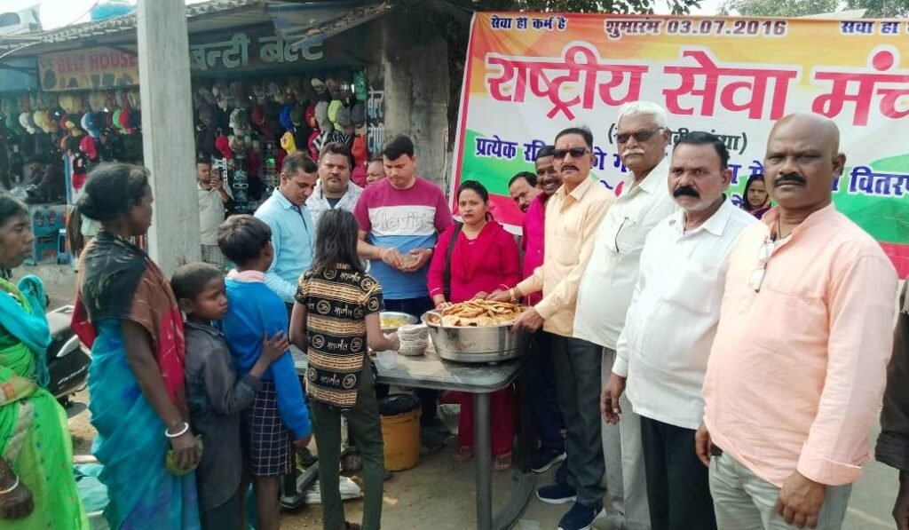 भुरकुंडा (रामगढ़)। सामाजिक संस्था राष्ट्रीय सेवा मंच ने प्रत्येक सप्ताह की भांति इस रविवार को भी साप्ताहिक हाट भुरकुंडा में दुर-दराज ग्रामीण क्षेत्रो से दातुन-पत्तल बेचने आने वाले लगभग 150 गरीबों को भोजन कराया। इस दौरान मंच के अध्यक्ष डब्लू सिंह और सुंदर नगर पंचायत की मुस्कान परवीन ने गरीब-जरूरतमंद महिला-पुरूष और बच्चों के बीच पुरी-सब्जी का वितरण किया।