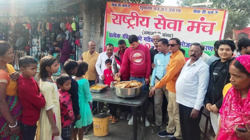 राष्ट्रीय सेवा मंच ने भुरकुंडा बाजार में 150 गरीबों को कराया भोजन