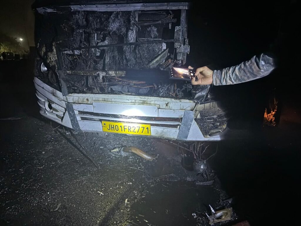रांची से प्रयागराज जा रही थी बस में लगी आग लोगों ने खुद कर बचाई जान।